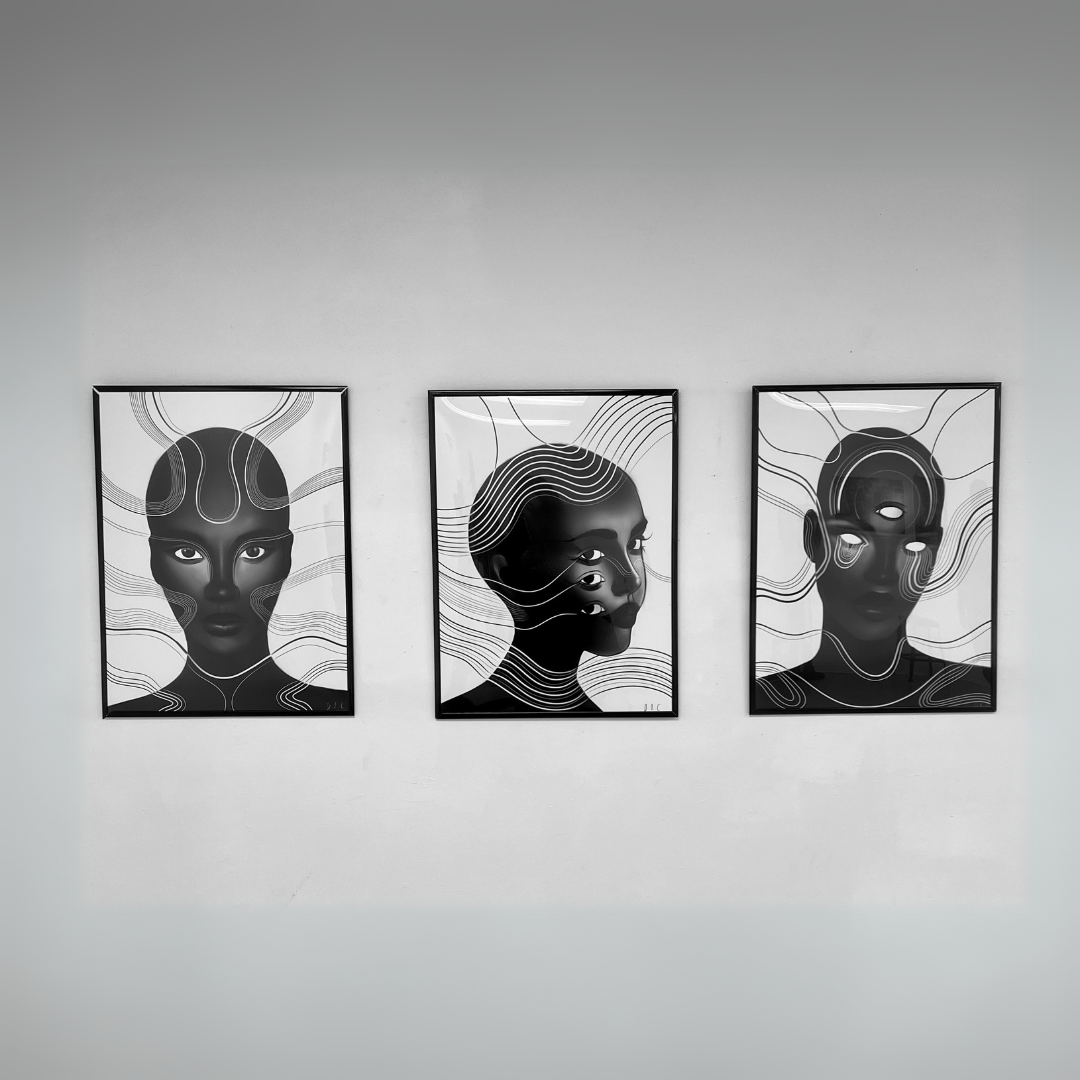 Sister Fates, Digital Art A series that reimagines mythological creatures and the concept of red string fate, offering a contemporary reflection on destiny and identity.