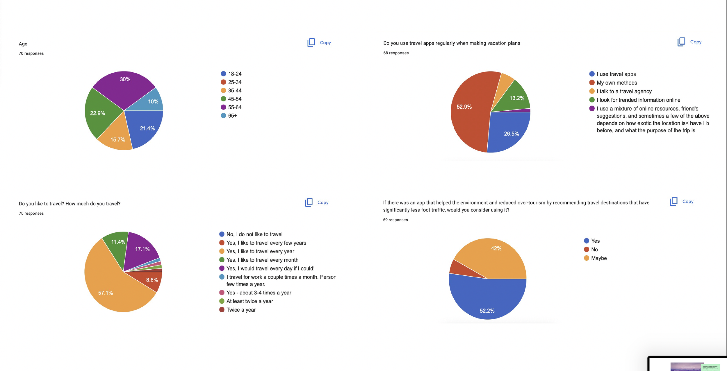 Primary and secondary research were conducted to better understand potential users, what they value most in current travel apps, the environmental concerns related to travel, and where AI could be integrated to streamline the overall experience.